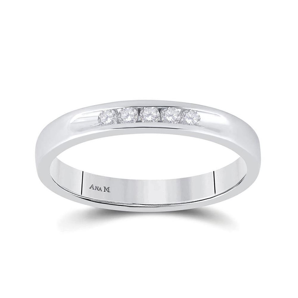 14kt White Gold Womens Round Diamond Wedding Single Row Band 1/8 Cttw