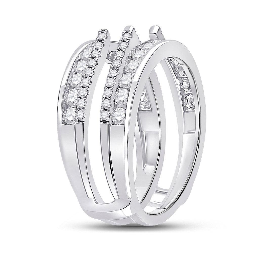14kt White Gold Womens Round Diamond Wedding Wrap Ring Guard Enhancer 1 Cttw