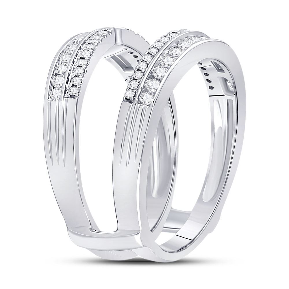 14kt White Gold Womens Round Diamond Wrap Ring Guard Enhancer 1/2 Cttw