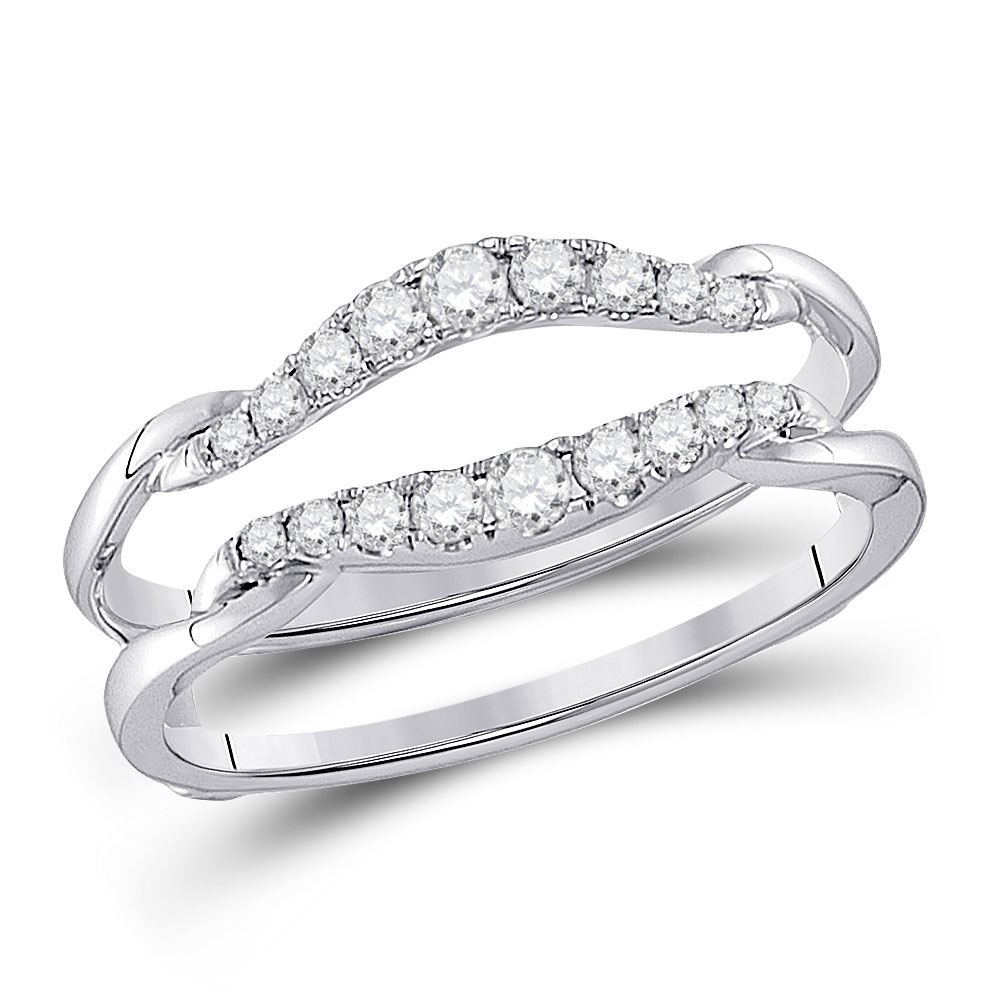 14kt White Gold Womens Round Diamond Wrap Ring Guard Enhancer 1/3 Cttw