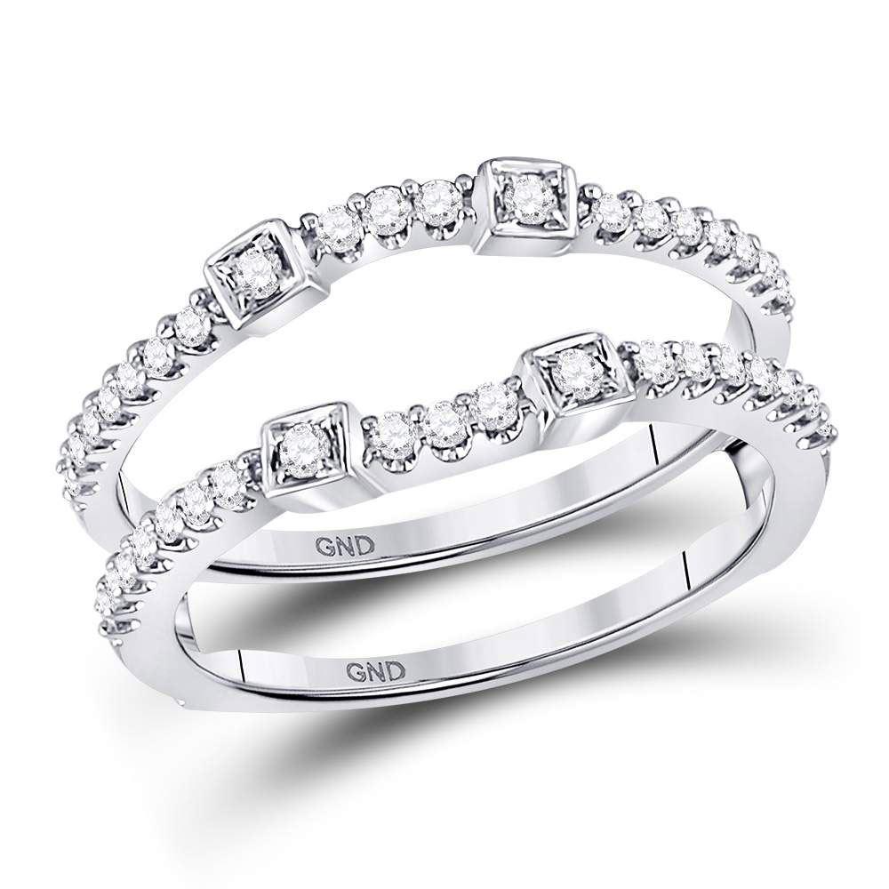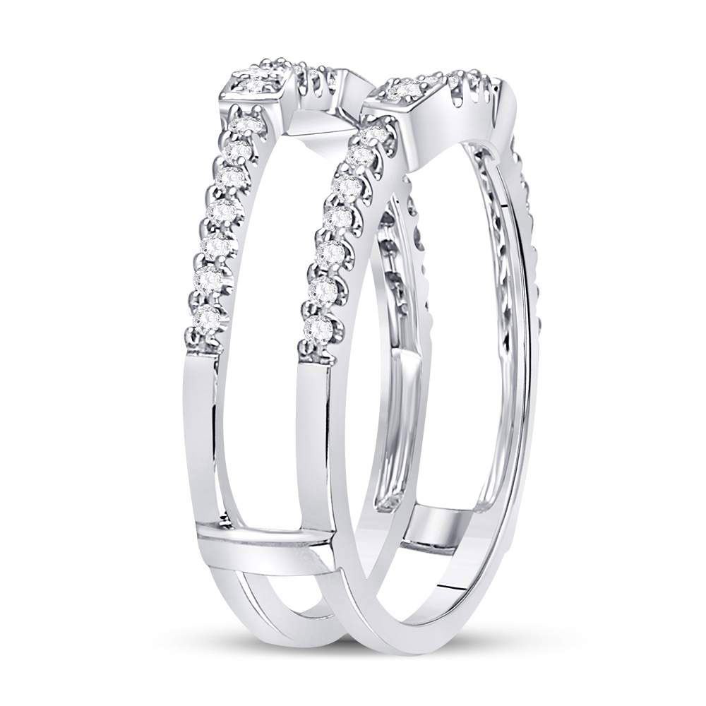 14kt White Gold Womens Round Diamond Wrap Ring Guard Enhancer 1/3 Cttw