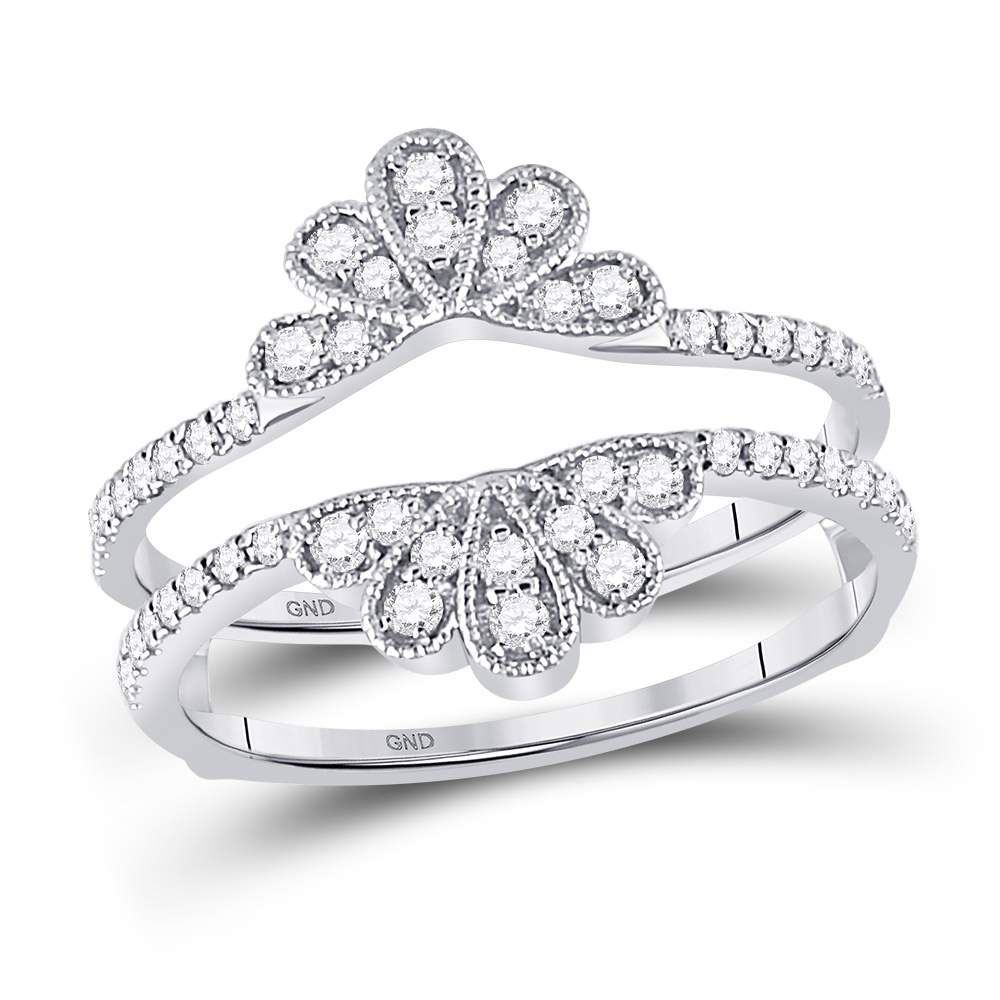 14kt White Gold Womens Round Diamond Wrap Ring Guard Enhancer 3/8 Cttw