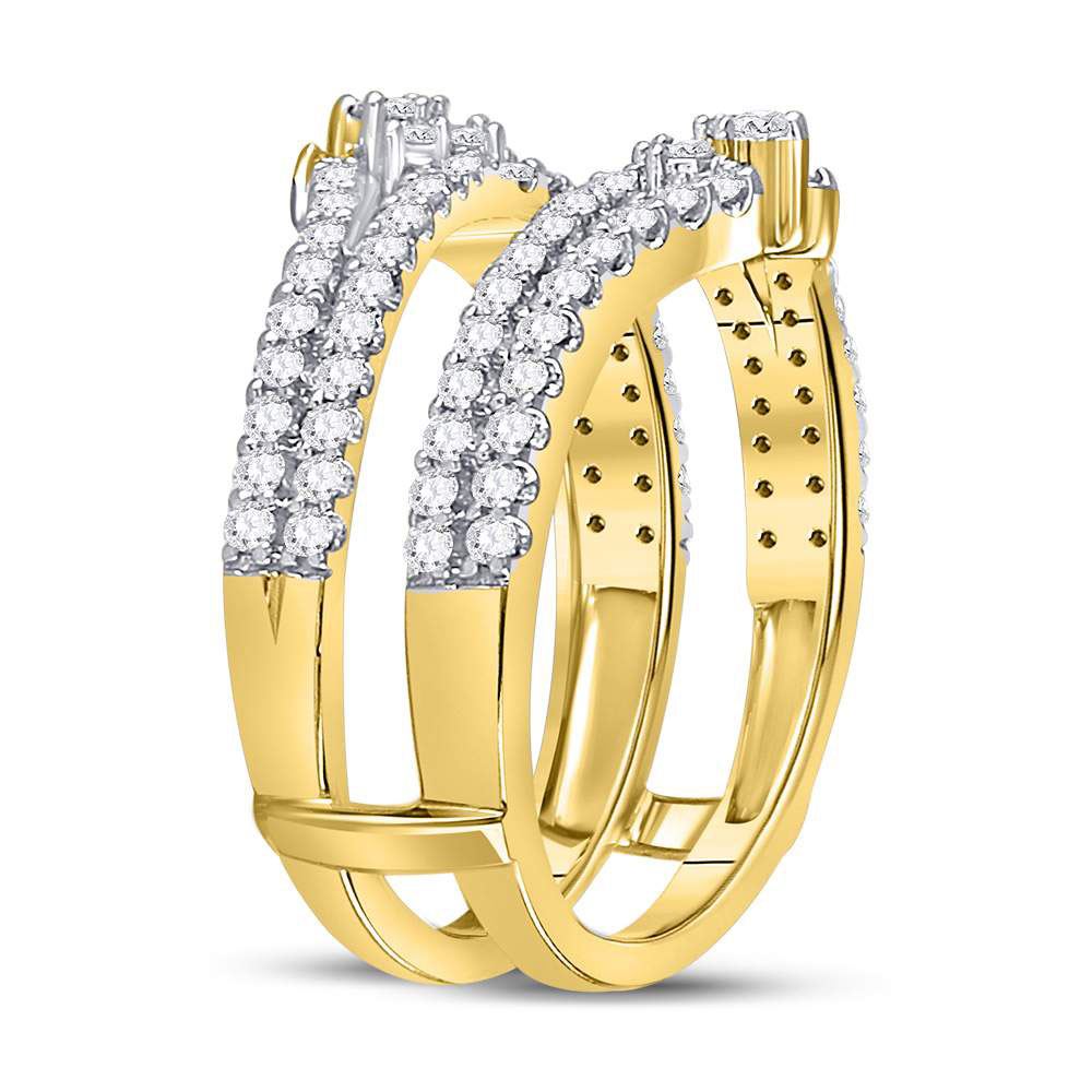 14kt Yellow Gold Womens Round Diamond Wrap Ring Guard Enhancer 7/8 Cttw