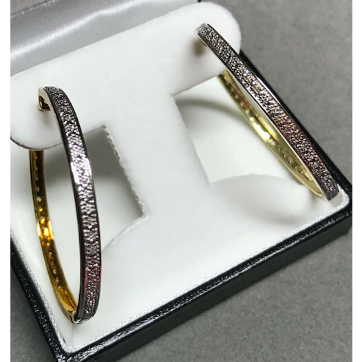 Yellow gold plated hoop style earrings with diamond chips. 1 5/8" D each. - 10406-050518-LA-00081