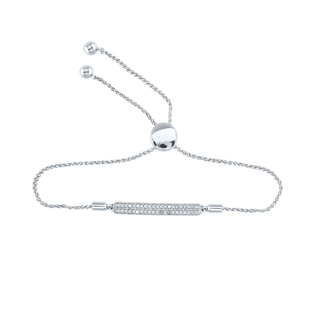 Sterling Silver Womens Round Diamond-accented Bar Bolo Adjustable Bracelet 1/10 Cttw