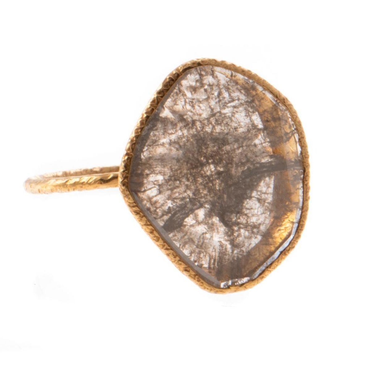 bezel-set with a faceted diamond slice weighing 2.66cts; weighing approximately 1.8 grams; size: 7+