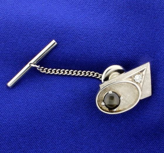 Diamond and Black Sapphire Cufflinks, Tie Tack, and Tuxedo Stud Set