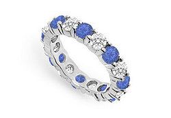Celebrate your commitment & devotion with this endless circle of gems. Round intense blue sapphires alternate with brilliant-cut diamonds in a 18K white gold prong-setting. This eternity band has a total gem weight (TGW) of 4.00 ct. Being a September birthstone; it is an ideal gift for any September born.