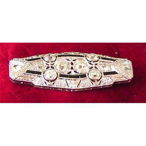 Art-Deco Diamond and Onyx Pin. Circa. 1930