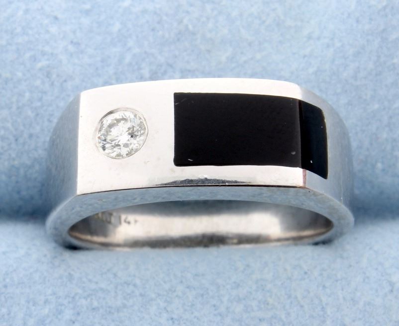 Another beautiful 14k white gold band style ring with a 1/5 of a carat diamond and onyx inlay. 8.8g Size 7