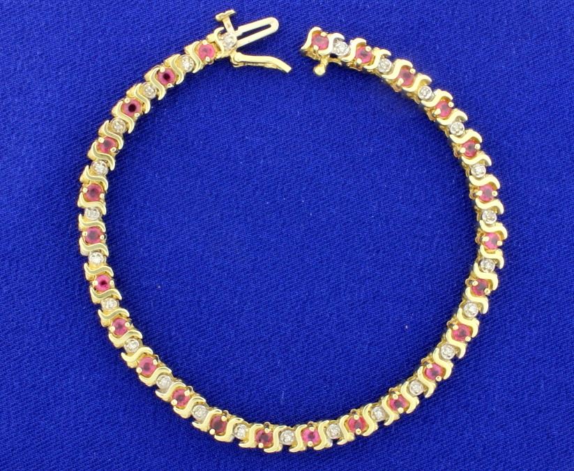 14k Yellow Gold. 7 inches long. 1/4 carat of Diamonds, approximately 1 carat of Fine Rubies. 12.5g
