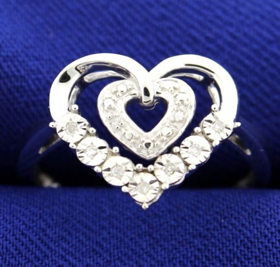 This beautiful ring contains .03 ct of diamonds set in sterling silver. Size 7. 2.4g