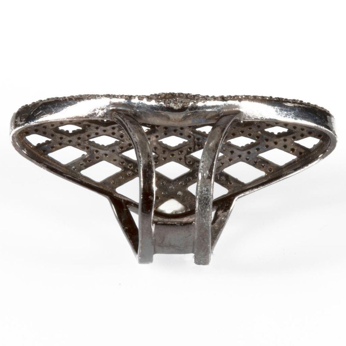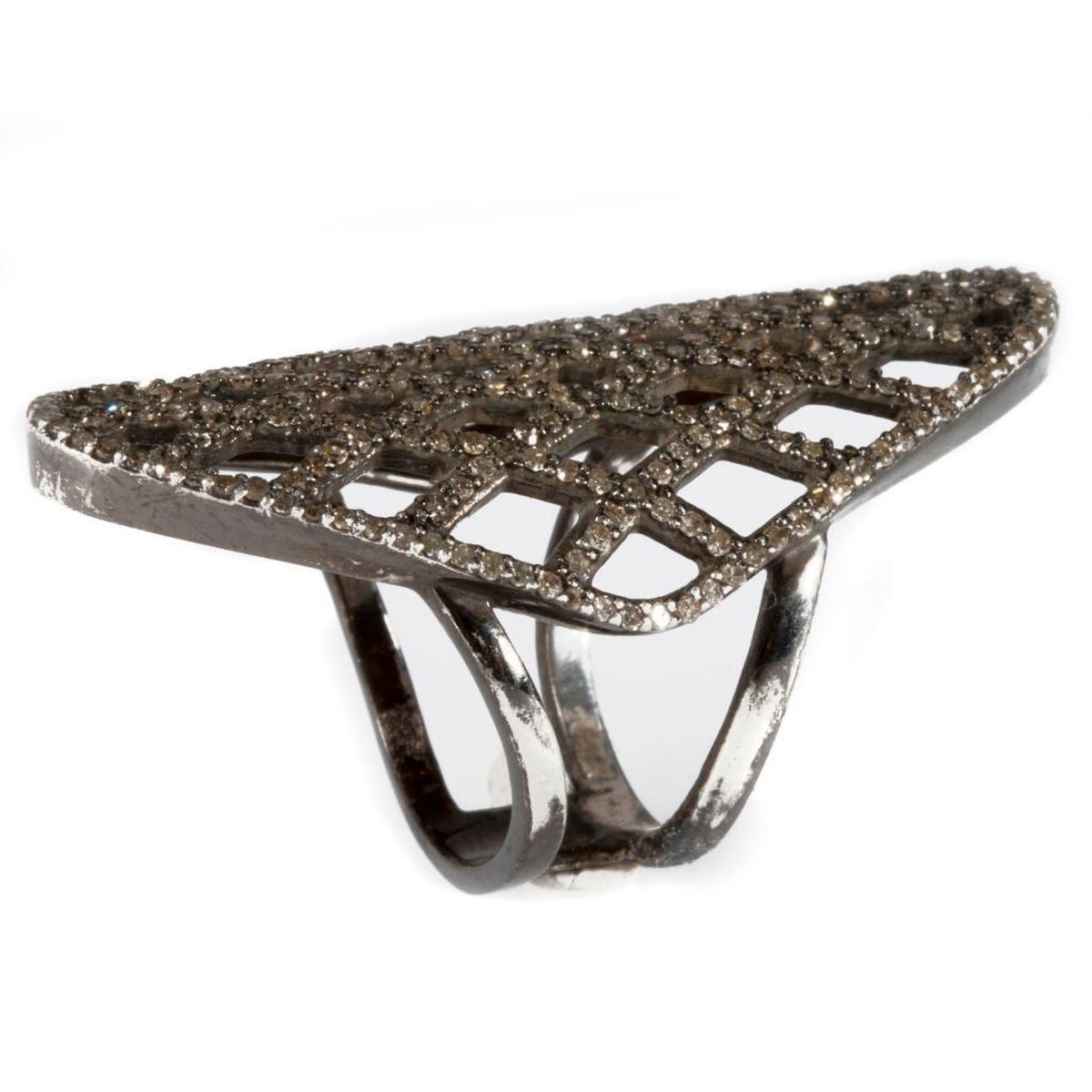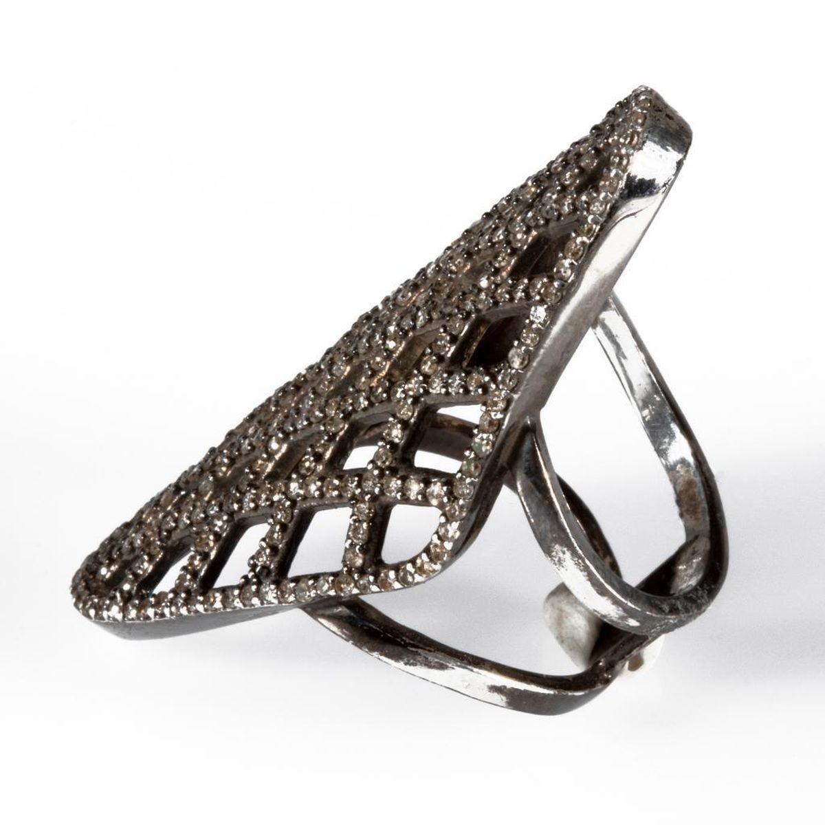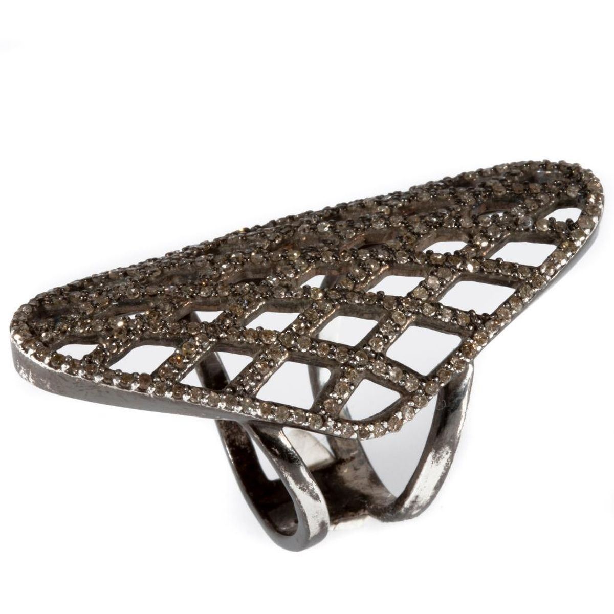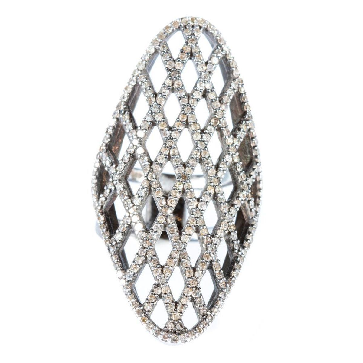 a statement ring of lattice design, set with single-cut diamonds weighing in total approximtely 1.26cts, brown/VS-Imp; length on finger: 1 5/8in; size: 5 1/2