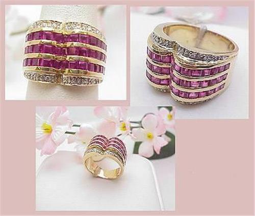 Diamond and ruby ring in 14kt yellow gold 10.0gr finger size 6 1/4