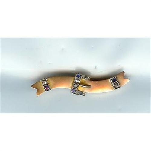 1./3/4" long X 1/4" wide. Buckle design. Mine cut diamonds. Sapphires. English 9ct. Gold Hallmarked 9.375-Anchor-M. for 1911.