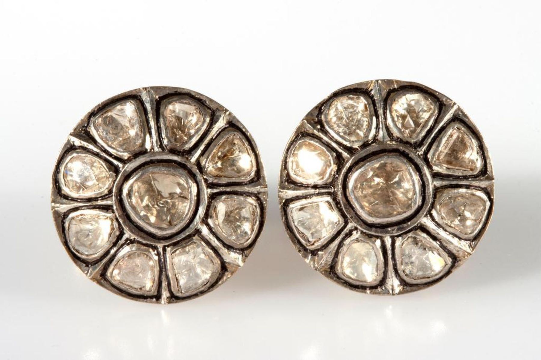 each cufflink set with 9 polki-cut diamonds; diameter: 3/4in.