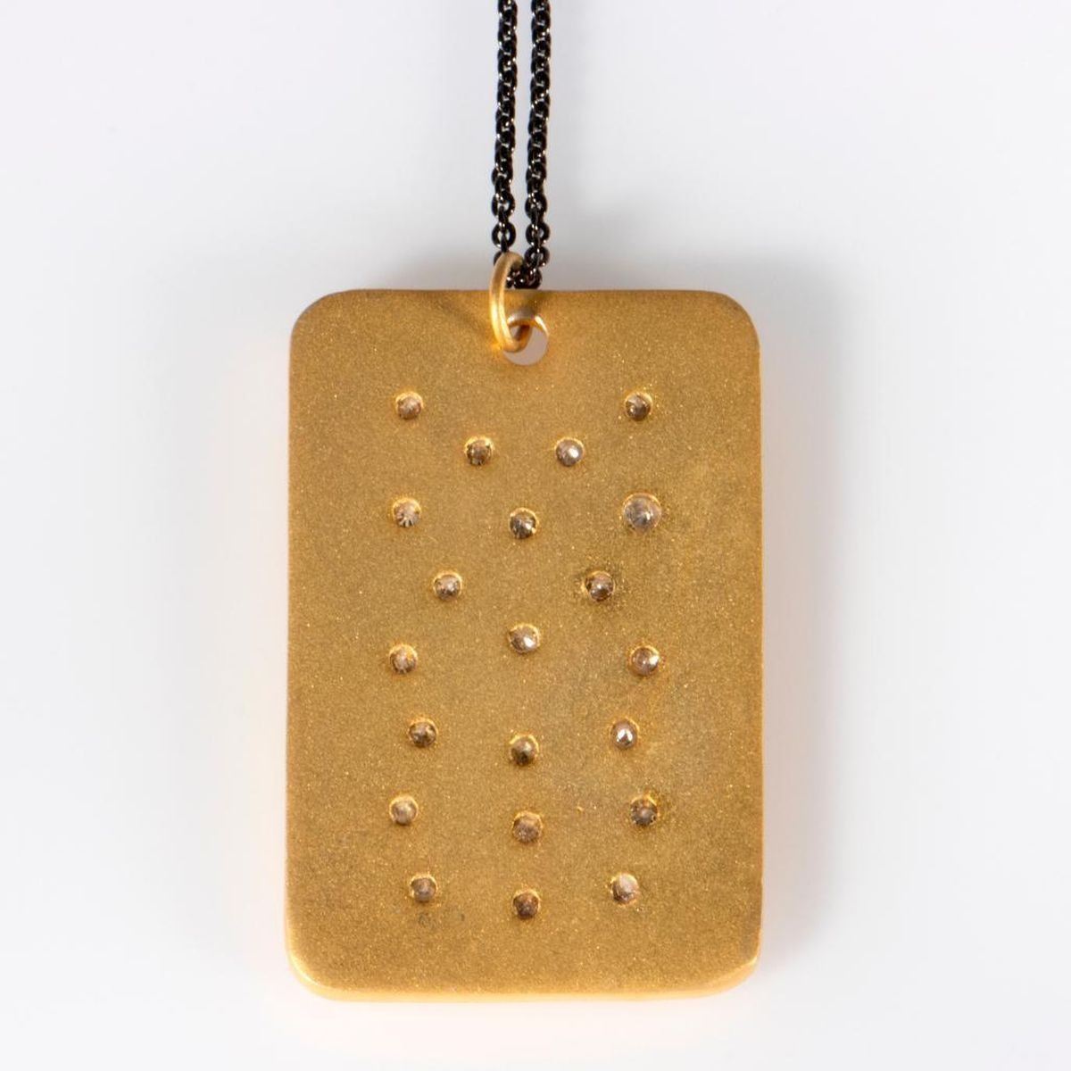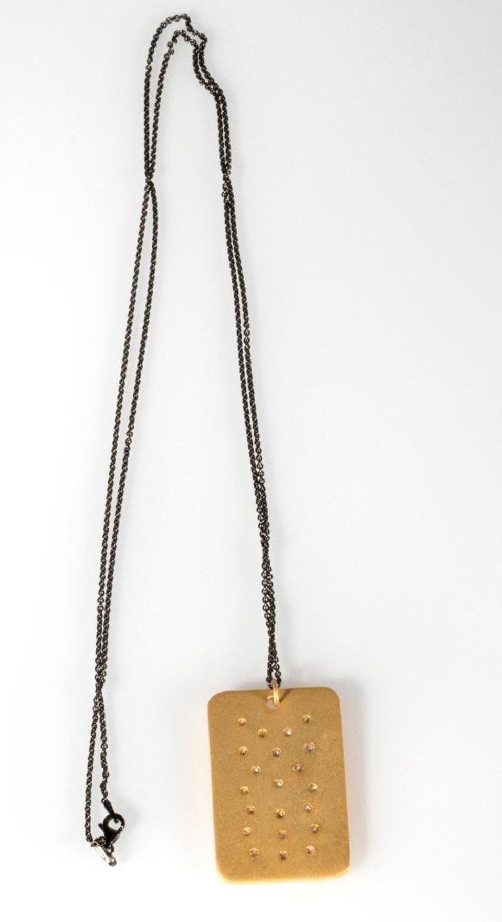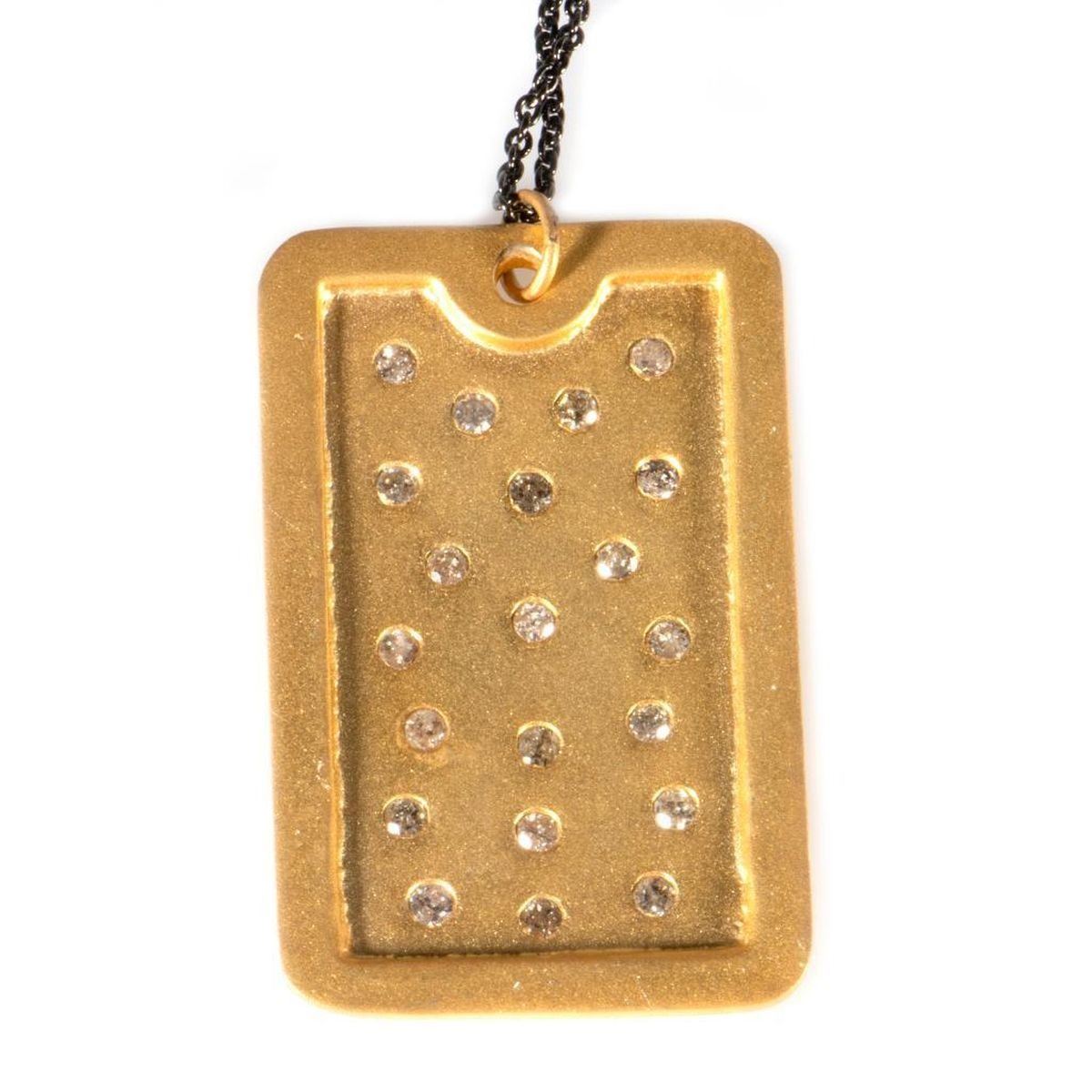 the dog tag pendant flush-set with 21 round brilliant-cut diamonds, weighing in total approximately 0.85ct (J-K-L-M/Imp); length: 30in.; pendant length: 1 3/4in.