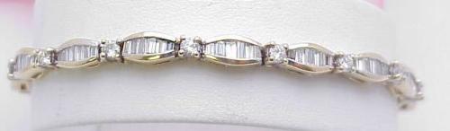 Diamond bracelet baguette and round diamonds approx 3.75Ctw 14kt yellow gold 7" 12.9 gr