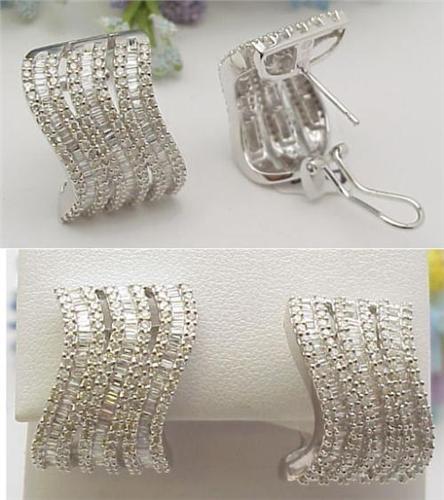 Diamond earrings round and baguette diamonds 3.50Ctw 18kt white gold 17.7gr