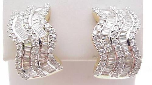 Diamond earrings with round and baguette diamonds 3.35Ctw 14kt yellow gold