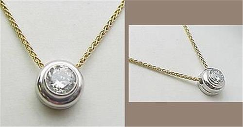 Diamond pendant set in a 14kt white gold bezel approx .60Ct SI I with 16" chain. 4.2gr