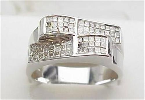 Diamond ring 1.00Ctw invisible set princess cut 14kt white gold 8.4gr size 10