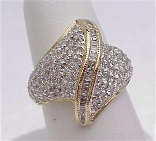 Diamond ring 1.25Ctw pave round and channel set baguette 14kt yellow gold 7.2gr size 6.75