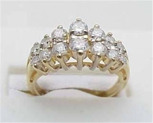 Diamond ring 1Ctw two row band 14kt yellow gold Clarity SI2 - I 1 Color J
