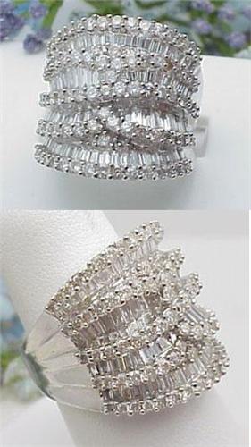 Diamond ring round and baguette diamonds 3.75Ctw 18kt white gold 17.1gr size 6.5