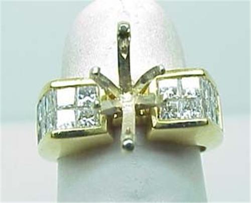 Diamond semi mount invisible set princess cut diamonds 2Ctw 14kt yellow gold size 5.5