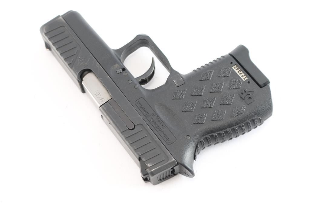 American made, striker fired semi-automatic sub-compact pistol chambered in 9x19mm. Features a matte black finished slide with fore & aft cocking serrations, 2.75" barrel, white dot front sight, dovetailed two-dot rear sight with square notch, smooth trigger, push button magazine release and black polymer frame with textured grip. Finish is 85% with minor signs of handling. Polymer frame looks good. Bore looks good, needs cleaned. Comes with original factory box with owners manual, pad lock and (2) 6-round magazines. Condition is NRA - Good.