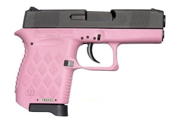 Description:DBF DB9 9MM DAO PST B PNK 6RD Manufacturer:Diamondback Firearms Model #:DB9 Type:Pistol: Semi-Auto Finish:Black Stock:Pink Polymer Frame Sights:Fixed 3-Dot Barrel Length:3" Overall Length:5.6" Weight:11 oz Caliber:9MM Capacity:6+1 Action:Double Action Only # of Mags:1 Packaging:Plastic Case Features:Mechanical Firing Pin Block, Steel Magazine Catch