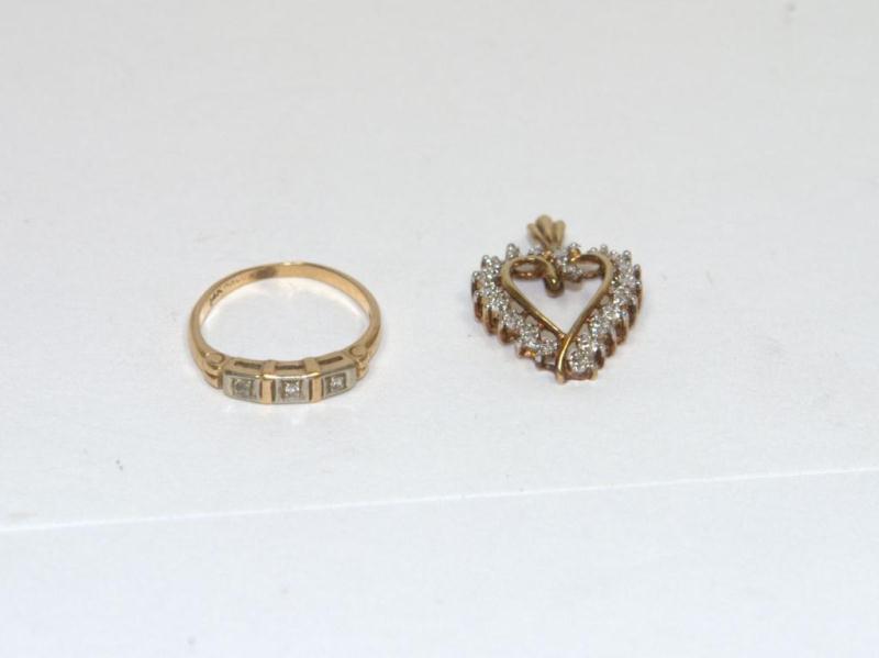 Total Retail $2,950 10Kt & 14Kt Yellow Gold -- Being Sold Times Money -- (#1) Retail Price $1,530 10Kt Yellow Gold -- Diamonds Heart Shape Ladies Pendant -- (#2) Retail Price $1,420 14Kt Yellow Gold -- 3 Diamonds Vintage Hand Made Ladies Ring --