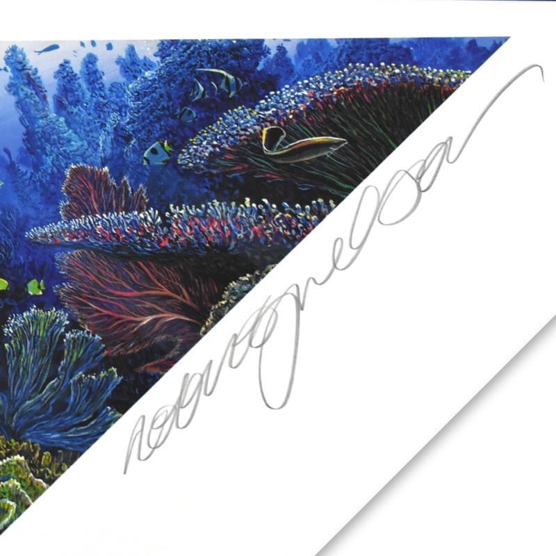 "Diamonds of the Sea" is a limited edition mixed media diptych on paper by Robert Lyn Nelson numbered and hand signed by the artist. Includes Letter of Authenticity. Measures approx. 28.5" x 29.5" (with border) 22.5" x 23" (image).