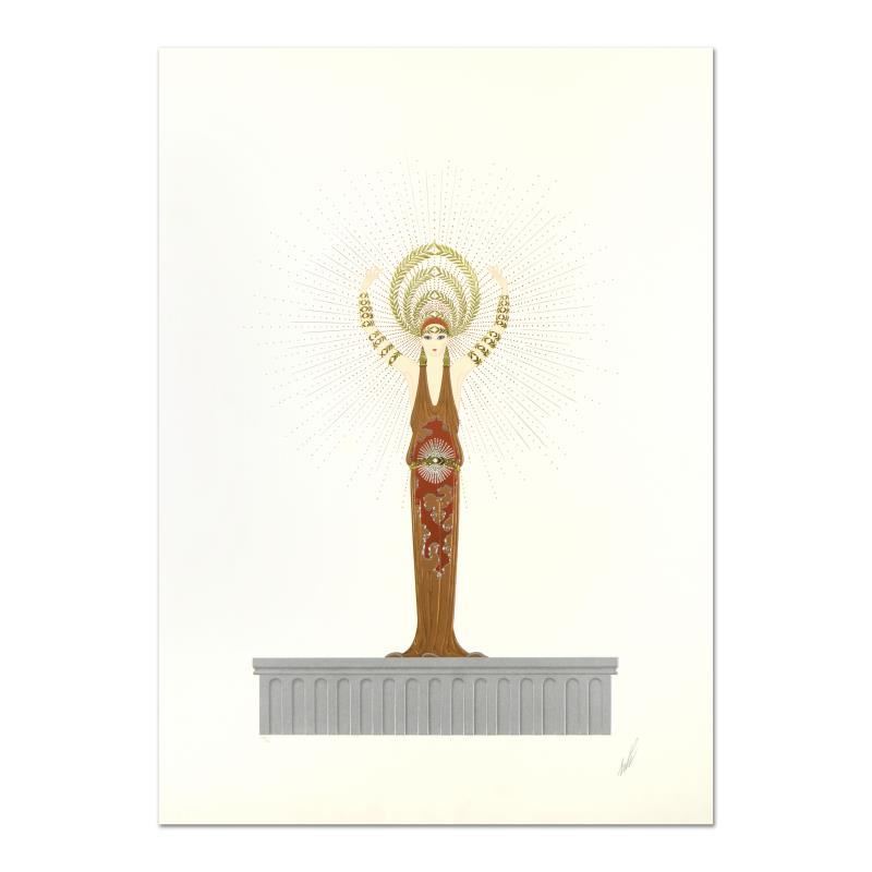 "Diana (Myths Suite)" is a hand signed limited edition embossed serigraph on paper by Erte (1892-1990), numbered XIX/CL. Includes Certificate of Authenticity. Measures approx. 24.5" x 34" (with border), 18" x 30" (image).