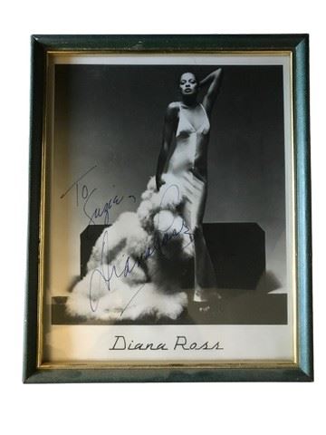 A 9“ x 11“ framed photo of Diana Ross signed to Suzy. The photo is in black-and-white. Susie was a personal friend and fan club president for Liza Minnelli. This autograph has been preserved in her collection for many years.