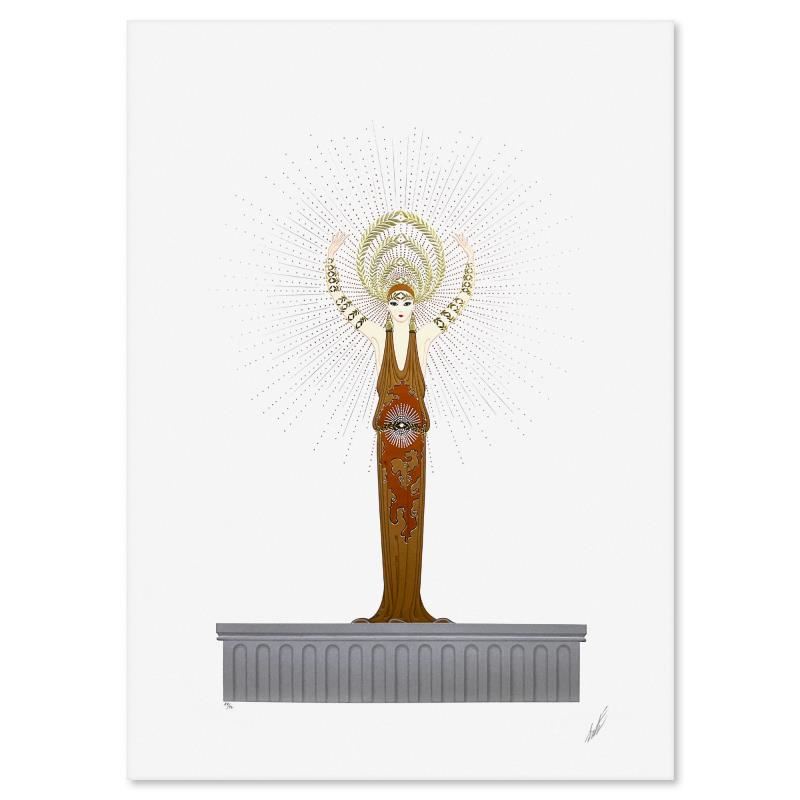 "Diana" is a limited edition embossed serigraph on paper by Erte (1892-1990), numbered XV/CL and hand signed by the artist. Includes Letter of Authenticity. Measures approx. 34.5" x 24.5" (image).