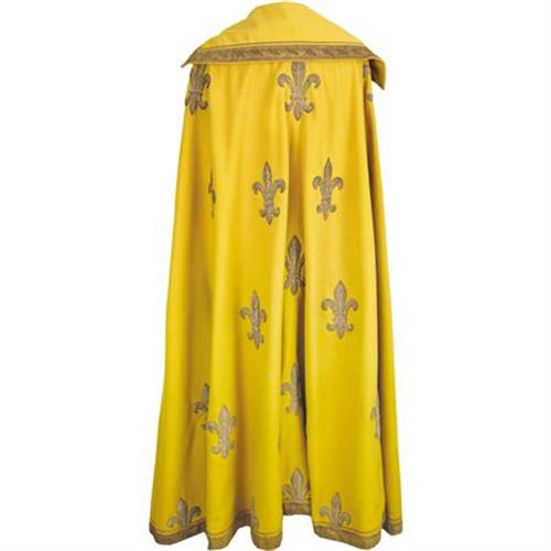 <B>"Diane" Roger Moore Screen-Worn Cape.</B></I> A regal full-length gold cape with large, repeating embroidered fleur-de-lis worn by actor Roger Moore as Prince Henri in <I>Diane</B></I> (1956). The lavish production co-starred Lana Turner -- her last film for MGM -- with costumes designed by the great Walter Plunkett who had previously designed the wardrobe for <I>Gone With The Wind</B></I> (1939). <I>Authenticated by the world's foremost curators of television artifacts, The Comisar Collection of Beverly Hills.</B></I><BR><BR><b>Shipping:</b> Clothing, Costumes & Jerseys (<a target="_blank" href="http://www.heritageauctions.com/common/shipping.php">view shipping information</a>)