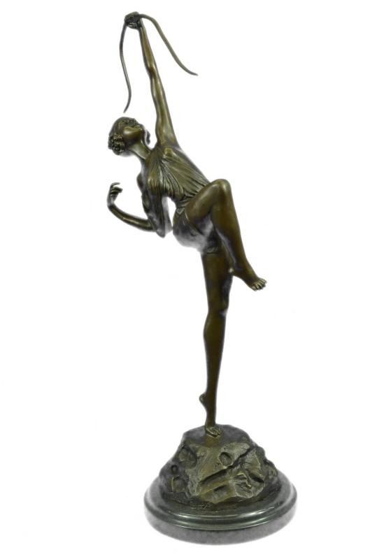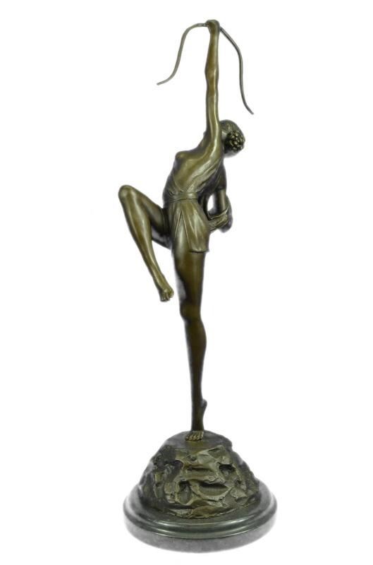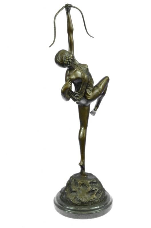 This piece is a gorgeous representation of the Greek goddess, Diana. In Roman mythology, Diana was the goddess of the hunt, being associated with wild animals and woodland, and of the moon. Diana was initially just the hunting goddess, associated with wild animals and woodlands. Young beautiful attendants, who used to hunt with her, always surrounded her. Romans identified Diana with the Greek goddess, Artemis. As Artemis, she was also a Moon goddess, supplementing Luna. Diana was worshiped in ancient Roman religion and is currently revered in the religions of Religion Ramona Paganism and Strengthener. In Capra and in Alicia, localities near Rome, there are still shrines dedicated to the old Italian goddess. Diana was the twin sister of the god Apollo. Her father and mother were Jupiter and Latoya. Dimensions: Height 20 X Width 6 inches. Weight: 10 LBS.
