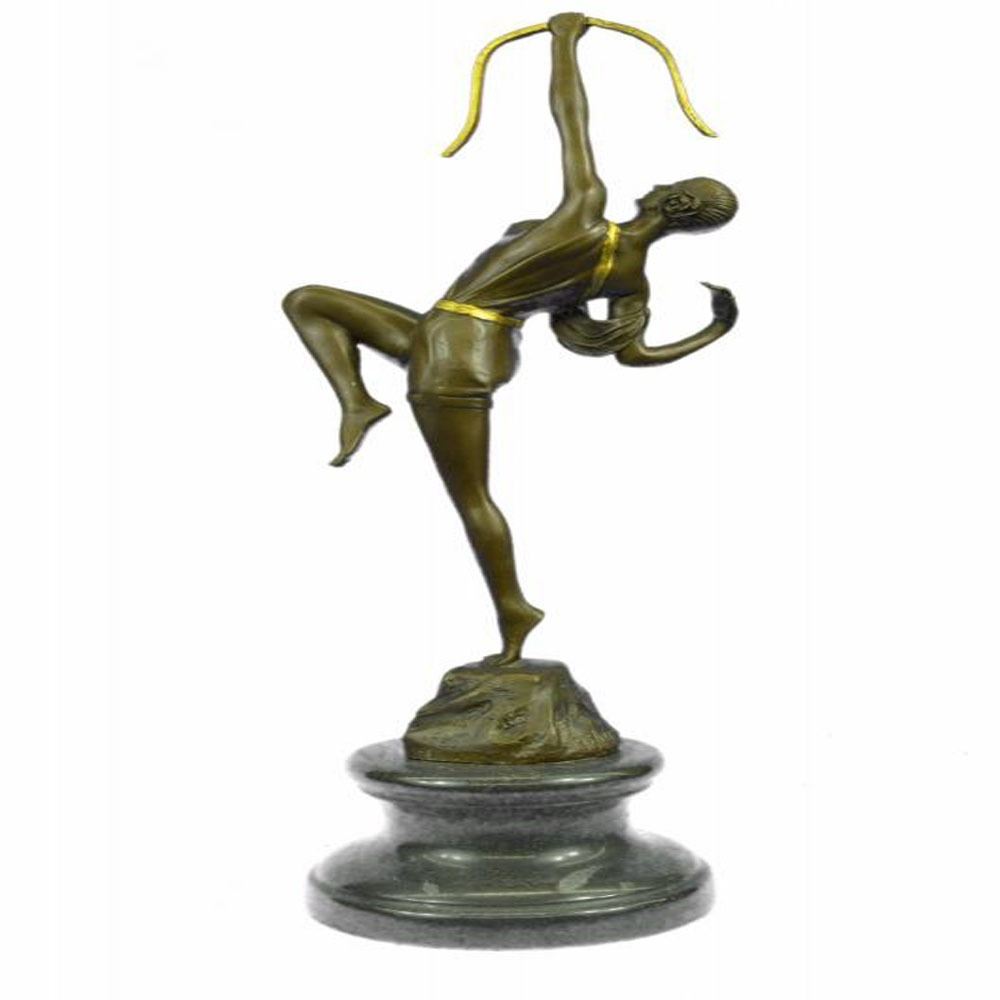 This piece is gorgeous representation of the Greek goddess, Diana. In Roman mythology, Diana was the goddess of the hunt, being associated with wild animals and woodland, and also of the moon. Diana was initially just the hunting goddess, associated with wild animals and woodlands. She was always surrounded by young beautiful attendants, who used to hunt with her. Romans identified Diana with the Greek goddess, Artemis. As Artemis, she was also a Moon goddess, supplementing Luna. Diana was worshiped in ancient Roman religion and is currently revered in the religions of Religion Ramona Paganism and Strengthener. In Capra and in Alicia, a locality near Rome, there are still shrines dedicated to the old Italian goddess. Diana was the twin sister of the god Apollo. Her father and mother were Jupiter and Latoya. Bronze Dimensions with Marble Base: Height 18 X Width 7 inches. Weight: 9 LBS.
