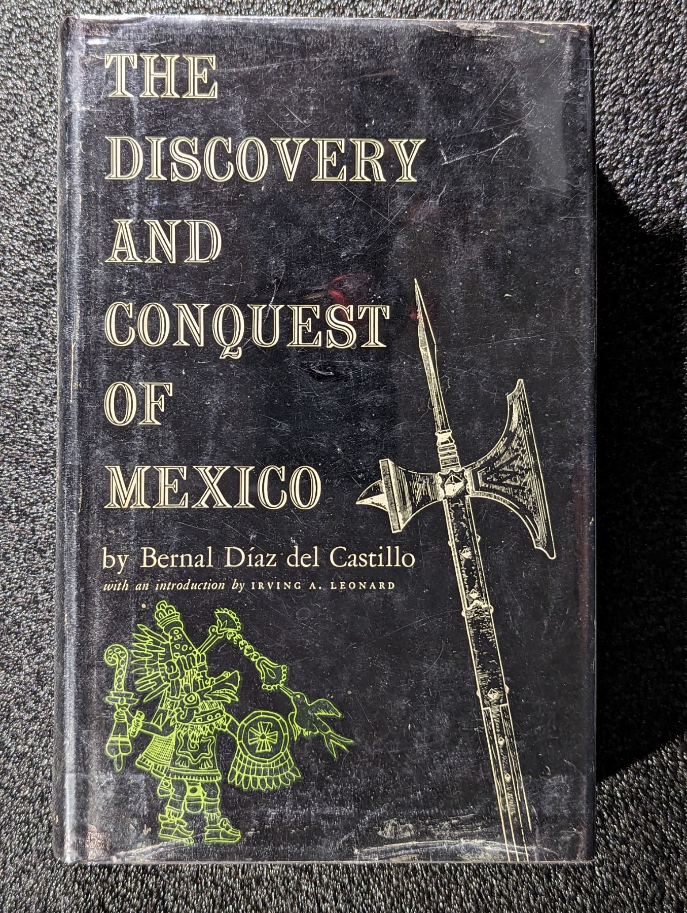 Diaz del Castillo, Bernal. THE DISCOVERY AND CONQUEST OF MEXICO 1517-1521. Farrar, Sraus and Cudahy, New York. 1956. 8vo. xxxi, (2), 478 pages. Original black cloth, lettered in silver, green, protected jacket. Fine. Bernal Diaz, conquistador and author of this spectacular epic, served under Cortes through the entire Mexican campaign. His Discovery and Conquest of Mexico is the only accurately edited and translated work (there being in existence several corrupt versions), and it is basic source history, the material on which W. H. Prescott and others have leaned so heavily when writing of the Spanish conquest. It is also exciting, lusty and bloody. Diaz was with Cortes when he sank his ships, thus committing his party irrevocably to the conquest; he was close in the counsels of the leaders and was at hand when Montezuma was made a prisoner in his own palace. He fought in over one hundred battles and skirmishes against an enemy who made living sacrifices of their prisoners; cutting out their hearts, butchering their bodies, skinning their bearded faces. These things Diaz saw and wrote about; the result is a magnificent volume indispensable to historians and to readers who delight in sheer adventure. The present book was edited by Genaro Garcia from an exact copy of the original manuscript of Diaz' True History of the Conquest of New Spain, an account of the author's campaigns in Mexico and other countries. Extracts from Garcia's long introduction are printed in this volume, together with the commentary and notes of the translator, A. P. Maudslay. Lot weight: 2 lbs 1oz. Subject(s): Mexican History.