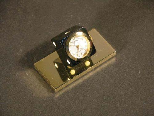 Dice clock - mounted on gold color aluminum base - black in color, circa 1960, Genovit Deluxe - Swiss made .5" square. Ex. cond.