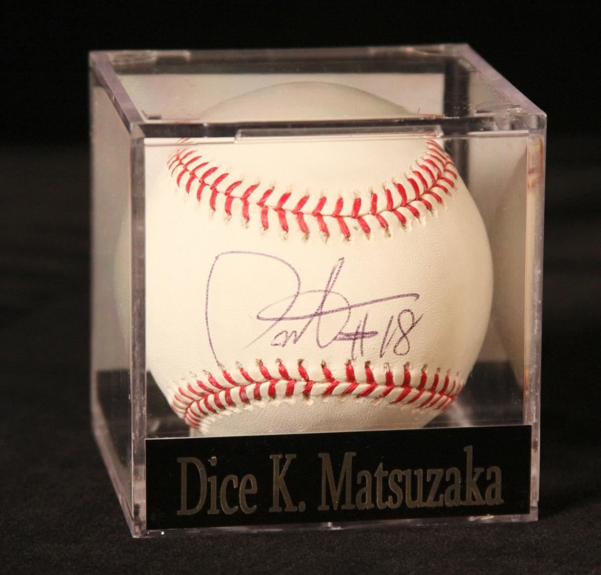 One baseball signed by pitcher, Dice K. Matsuzaka. Comes with case and a certificate of authenticity.