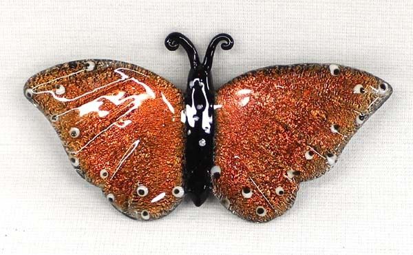 Dichroic Glass Monarch Butterfly, hand blown in Northern Thailand, comes in woven silk display box, measures 4.25'' x 2.25''