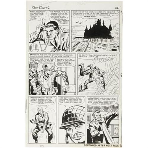 <B>Dick Ayers and George Roussos (as George Bell) - Sgt. Fury #8, page 18 Original Art (Marvel, 1964).</B></I> Reb Ralston and Izzy Cohen stumble into one of Dr. Zemo's deadly booby traps in these scenes from "The Death Ray of Dr. Zemo." This page has an image area of 12.5" x 18.5", and the art is in Excellent condition.<BR><BR><b>Shipping:</b> Flat Material, Large (<a target="_blank" href="http://www.heritageauctions.com/common/shipping.php">view shipping information</a>)