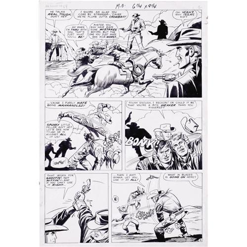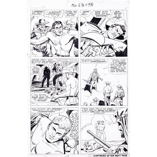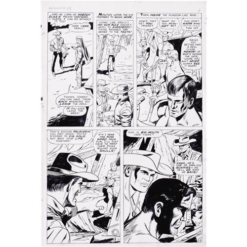 <B>Dick Ayers and Vince Colletta - Rawhide Kid #59 Page Original Art, Original Art (Marvel, 1967).</B></I> Slap leather, hombres, with these four fast-shooting pages showcasing Marvel's top gun -- the Rawhide Kid. The Kid's the coolest cowboy this side of Clint Eastwood or Steve McQueen, and this lot includes pages 2, 3, 4, and 5 of the story. The image area of each page measures 12" x 18", and the art is in Very Good condition.<BR><BR><b>Shipping:</b> Large Flat (<a target="_blank" href="http://www.heritageauctions.com/common/shipping.php">view shipping information</a>)