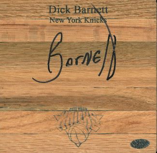 Dick Barnett spent 14 seasons in the NBA (1959–73), but is mostly known for his 9 seasons with the New York Knicks. Barnett played in the 1968 NBA All-Star Game and was a part of the famous 1970 Knicks team, that won the NBA championship against the Los Angeles Lakers. He scored 15,358 regular season points in his career. Dick Barnett has hand signed this 6x6 floor board. Leaf Authentics Hologram and Certificate of Authenticity from Athlon Sports.