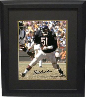 Dick Butkus is regarded as the greatest linebacker of his generation and one of the best linebackers of all-time. Butkus starred as a football player for the University of Illinois and the Chicago Bears. He became a member of the Pro Football Hall of Fame in 1979. Dick Butkus has hand autographed this Chicago Bears 8x10 Photo. Certificate of Authenticity from Athlon Sports. Custom Black Mat and Black Framed as shown.