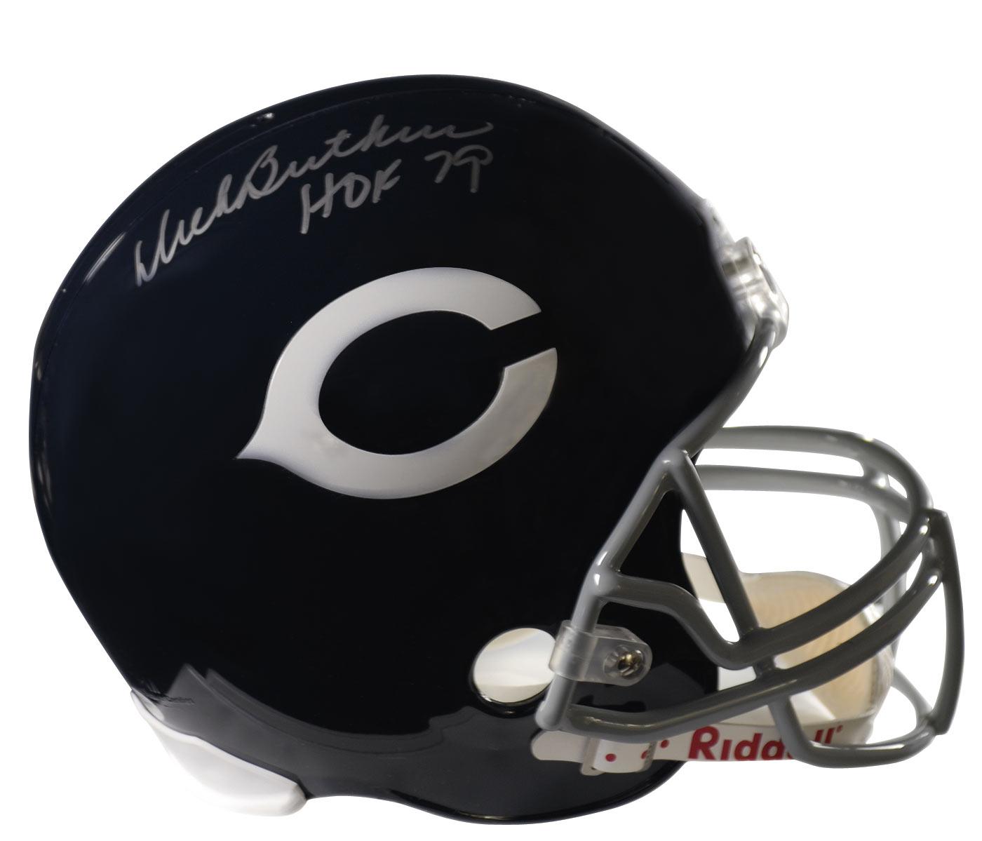 Official Riddell replica Chicago Bears football helmet signed in silver ink on the side, “Dick Butkus HOF 79.” In very fine condition.
