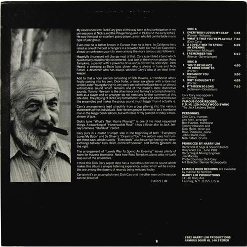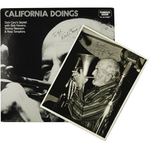 <B>Dick Cary Signed Record and Photo Group.</B></I> Traditional jazz arranger extraordinaire Dick Cary is showcased in this lot. This group includes: "California Doings - Dick Cary's Septet with Bob Havens, Tommy Newsome, and Ross Tompkins" (Famous Door HL 140 Stereo) with its cover signed by Dick Cary (and a signed photo of Cary).<BR><BR><b>Shipping:</b> Recordings (<a target="_blank" href="http://www.heritageauctions.com/common/shipping.php">view shipping information</a>)